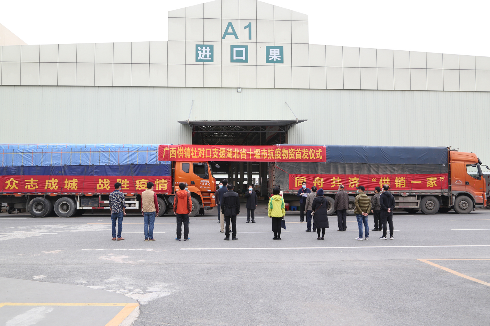 2月21日一早,广西供销社筹集的首批3000多件、40多吨、价值40多万元的防疫和生活物资,从南宁市农产品交易中心启运,星夜兼程驰援湖北十堰,为湖北十堰决胜决战防疫工作贡献广西供销力量。