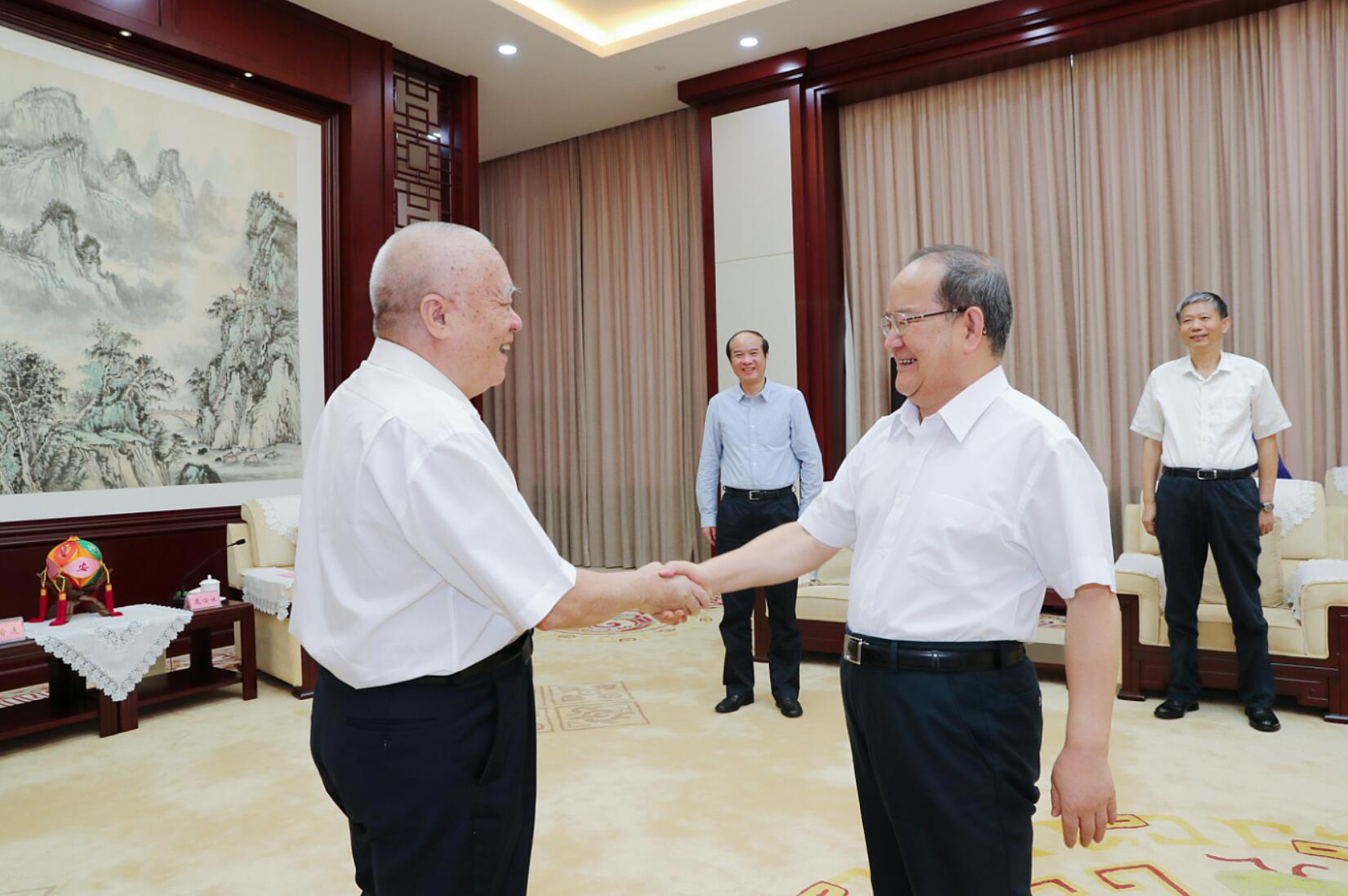 6月3日,自治区党委书记、自治区人大常委会主任鹿心社在南宁会见郑皆连院士和研究团队核心成员,代表自治区党委、政府向他们表示热烈祝贺和诚挚慰问。黄克/摄