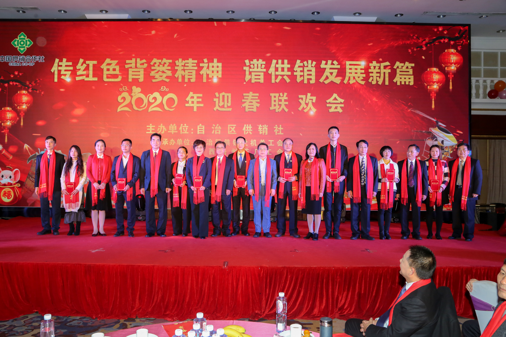 1月15日,自治区供销社举办“传红色背篓精神·谱供销发展新篇”迎春联欢会。自治区供销社机关、直属企事业单位负责人、教师代表、职工代表等相聚在邕江宾馆,以迎春联欢会的形式深情回顾2019年工作成效,共同展望2020年美好未来。