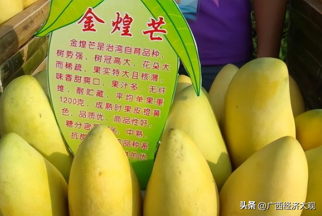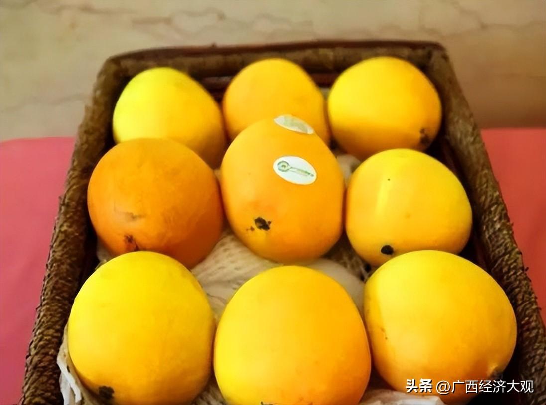 金煌芒属大型果,果实特大且核薄,平均单果重1200克;套袋果实成熟时果皮橙黄色,果肉也是橙黄色,颜色十分诱人,味道香甜爽口、汁多、纤维极少,肉质细滑。