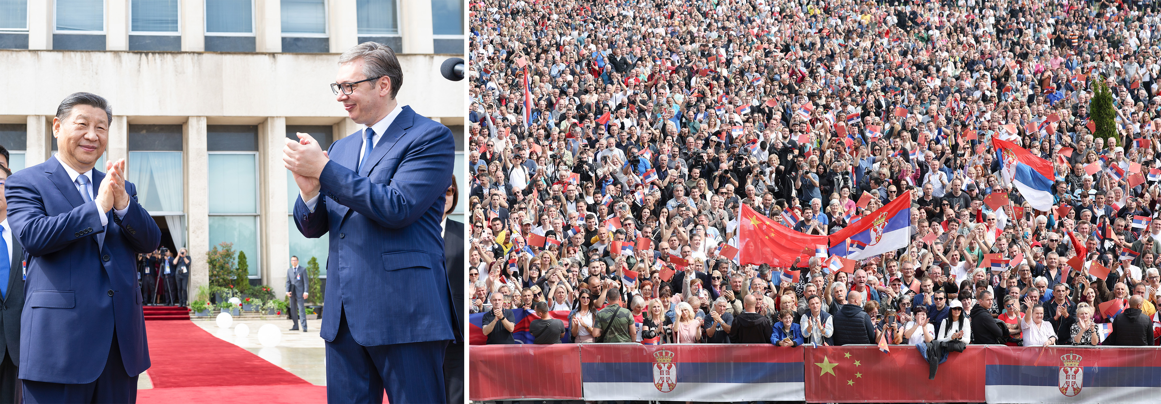 近2万名当地民众齐聚塞尔维亚大厦广场,挥舞中塞两国国旗,齐声呼喊两国国名,欢迎中国元首来访。“我为那个场面所震撼,也深受感动。”习主席感叹。