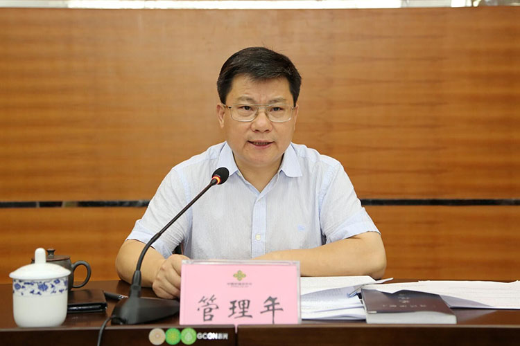 图为党组书记、理事会主任管理年同志作巡视整改动员讲话