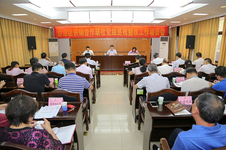 为深入学习自治区党委第七巡视组巡视反馈意见,推动巡视整改工作落地落实,2019年9月24日,区联社党组在二楼会议室召开巡视整改工作动员会。党组成员、理事会副主任、直属机关党委书记谭明同志主持会议。区联社副厅级以上领导,各处室、机关服务中心全体干部职工,各直属企业、院校党政主要负责同志参加了会议。