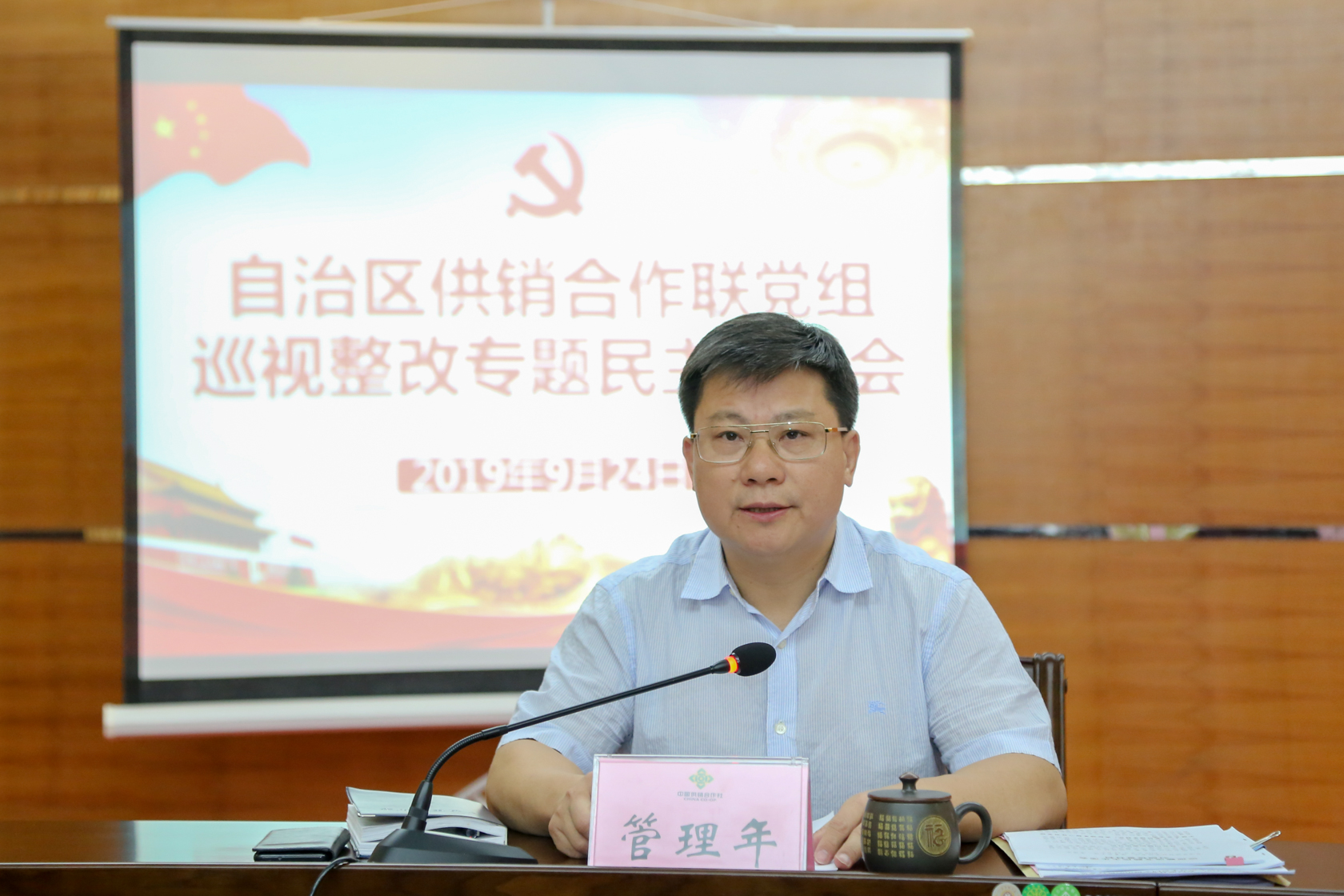 最后,管理年同志对会议进行了小结。他指出,一要提高政治站位,切实增强巡视整改工作的使命感责任感。坚持以习近平新时代中国特色社会主义思想为指导,把抓好巡视整改作为一项重大政治任务,严格落实自治区党委第七巡视组的反馈意见和整改部署要求,把巡视整改的过程作为改进工作、锤炼作风的重要过程,做到真改、实改。二要主动对标对表,采取强有力措施抓好巡视反馈意见整改落实到位。切实担负起抓好巡视整改的主体责任,坚持问题导向,明确整改责任,层层分解任务,明确措施要求和完成时限,确保巡视反馈的每个问题条条有整改、件件有着落。三要巩固和扩大巡视整改成果,着力推动供销社改革发展不断取得新成效。持续深化巡视整改,加强巡视整改成果运用,不断推动全面从严治党向纵深发展,切实把巡视整改成效体现到推动供销社改革发展的生动实践上,扎实推动供销合作事业高质量发展走在前列,以优异成绩庆祝新中国成立70周年。
