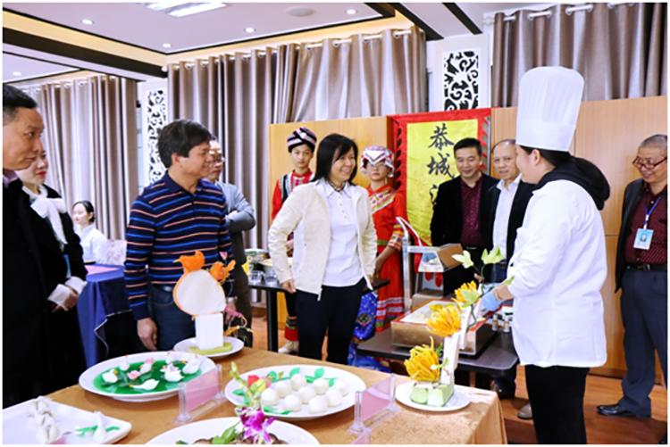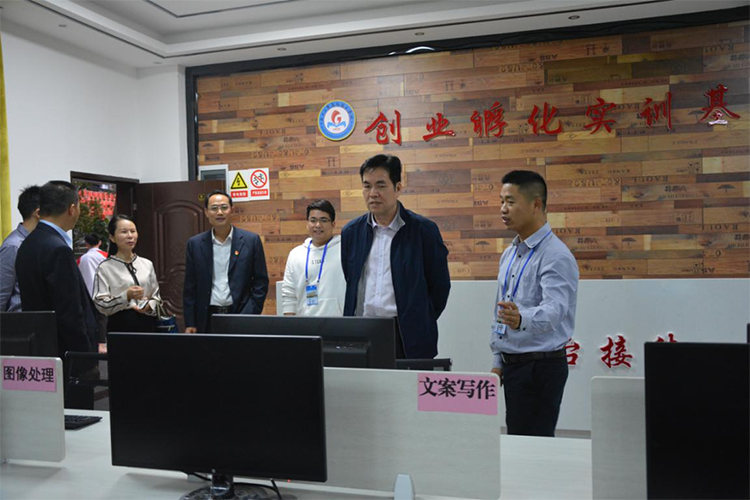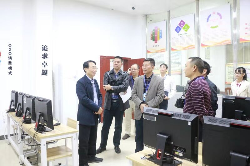 图为谭明一行考察广西钦州商贸学校实训基地。