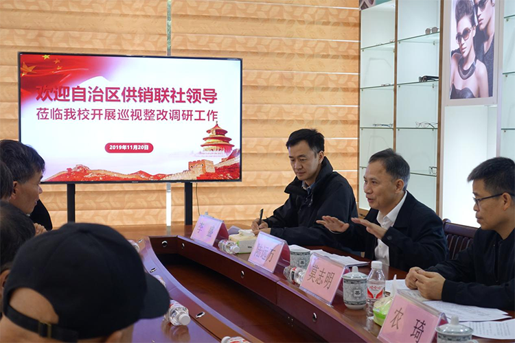 11月18日—20日自治区供销社党组成员、监事会副主任李宁一行到机关服务中心、广西振宏服务有限责任公司、广西富满地农资集团股份有限公司、广西工贸职业技术学校开展巡视整改工作调研。19日,调研组对广西工贸职业技术学校的学生消费合作社、东巴凤农产品展示中心等地进行了实地考察,对学校近年来取得的成绩给予了充分肯定。李宁指出,学校要以巡视整改为契机,加强内部管理,认真谋划办学,做好学生安全教育、思想教育、人才培养等工作,推进学校健康快速发展。