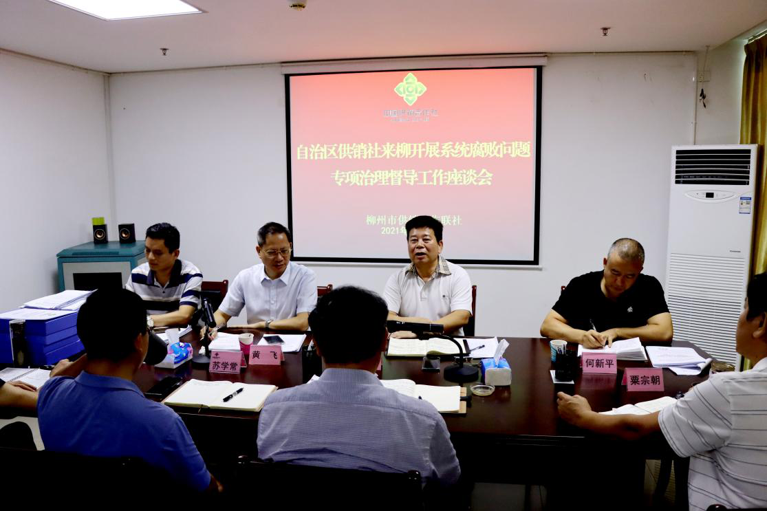 督导组先后实地走访考察了融安县大良镇供销社升级改造项目、长安镇银洞村供销社电商平台(蚂蚁农业)、柳城县太平镇龙兴村供销社(立富康德专业合作社)、太平供销社综合服站、柳城县供销社县级综合服务中心(纳集盛电商)等基层经营服务网点,并在柳州市供销社召开腐败问题专项治理工作督导座谈会。柳州市供销社党组书记、理事会主任于祖斌及各县(区)供销社、城郊社负责同志分别汇报了专项治理工作开展以来采取的措施、取得的成效和存在的问题。
