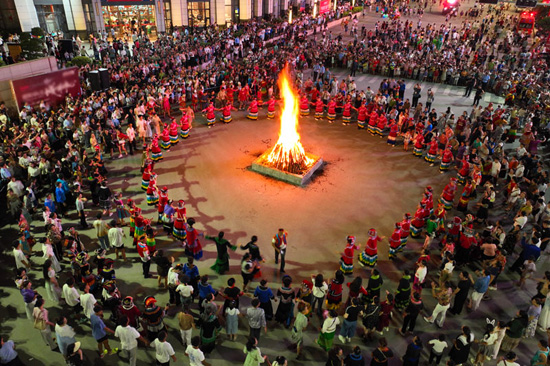 热闹非凡的彝族火把节。韦宇摄