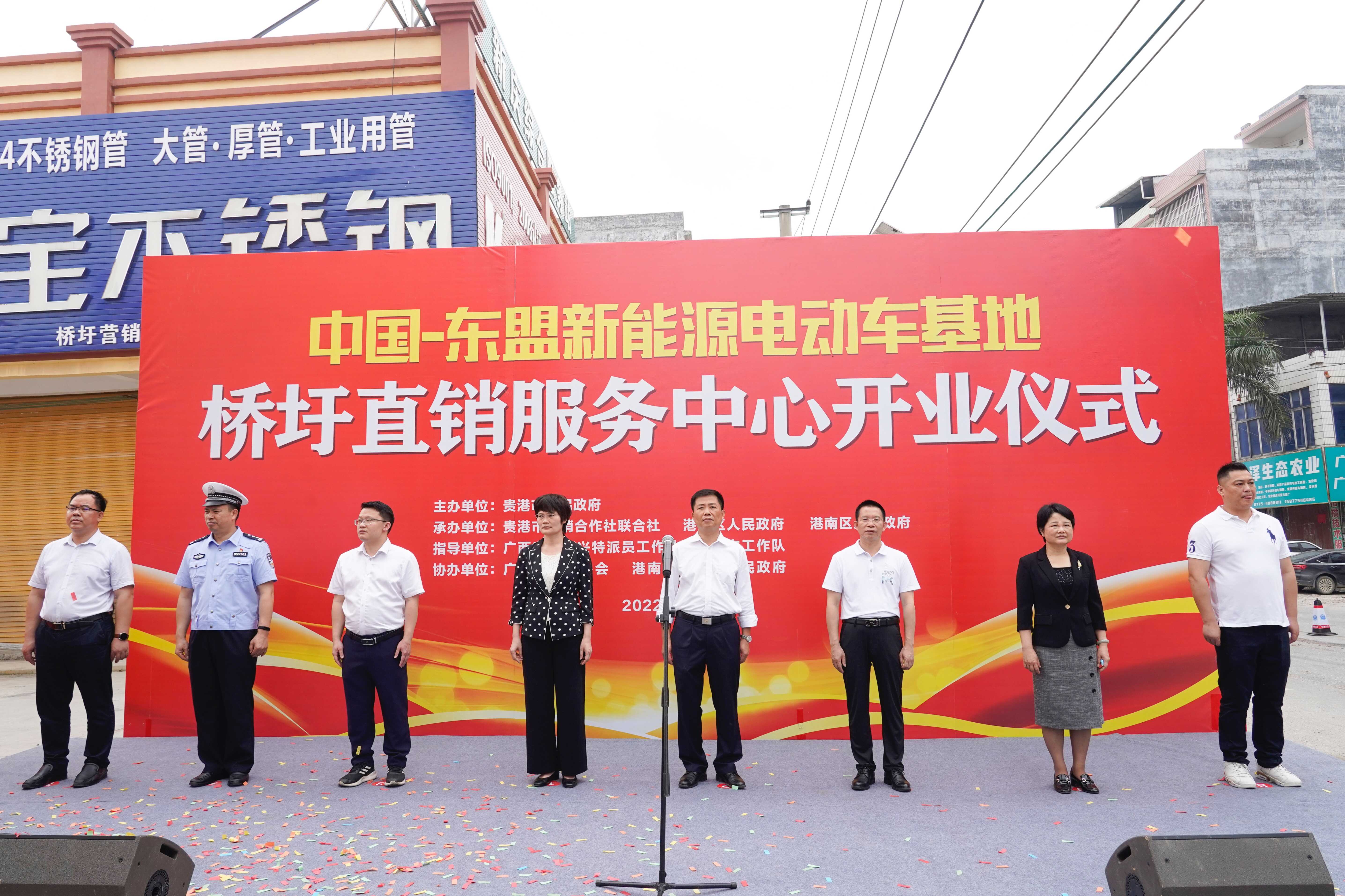 4月26日,贵港市首家中国——东盟新能源电动车基地桥圩直销点(供销社集团新能源电动车直销服务中心)举办开业仪式,贵港市政协副主席韦芬萍,市政府副秘书长潘建华,市工业和信息化局、市商务局、市供销社、市交警支队、 市车管所、市交警二大队,港北区、港南区政府相关领导出席仪式。贵港市供销社港北办事处主任、港南办事处负责人王志伟代表供销社介绍销售点情况。