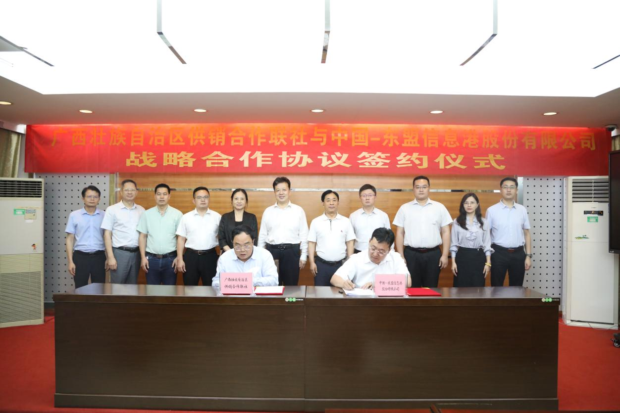 5月23日,自治区供销社与中国-东盟信息港股份有限公司在自治区供销社二楼会议室签订战略合作协议并座谈交流。根据协议,双方将共同打造广西智慧供销服务平台,重点构建“农资交易、农事服务、智慧物流、循环产业、信息服务、金融惠农、综合办公”等七大子平台,通过资源汇聚和科技赋能,助力广西供销社农资产业转型升级,形成具有全国影响力的线上线下一体化数字农资服务体系,赋能“三农”事业,最终实现农资保供稳价、农业丰产增效的工作目标。自治区供销社党组书记、理事会主任吴浩岭,党组成员、监事会副主任李宁,中国-东盟信息港股份有限公司党委书记、董事长兼总裁鲁东亮,联席总裁李珩,执行总裁肖彦、甘秋玲等共同见证签约。自治区供销社党组成员、理事会副主任秦昆,中国-东盟信息港股份有限公司高级副总裁吴玉青分别代表双方签订协议。