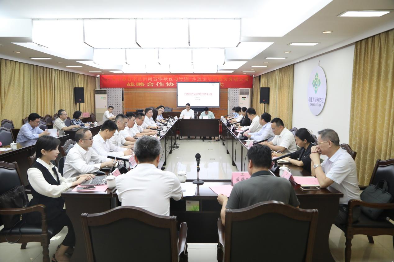 签约仪式前,中国—东盟信息港股份有限公司数字产业事业群总经理兼广西泛糖科技有限公司总经理吕英杰,介绍了广西农资产业互联网平台的初步方案。自治区供销社办公室、经济发展处、财会资产处、基层工作处、农村合作金融与电子商务处、行业指导处、社有企业管理处负责同志,广西供销投资集团有限公司、广西供销循环经济产业集团有限公司、广西供销农资有限公司、广西供销现代农业服务有限公司负责人及中国—东盟信息港股份有限公司相关部门负责人参加签约仪式及座谈会。