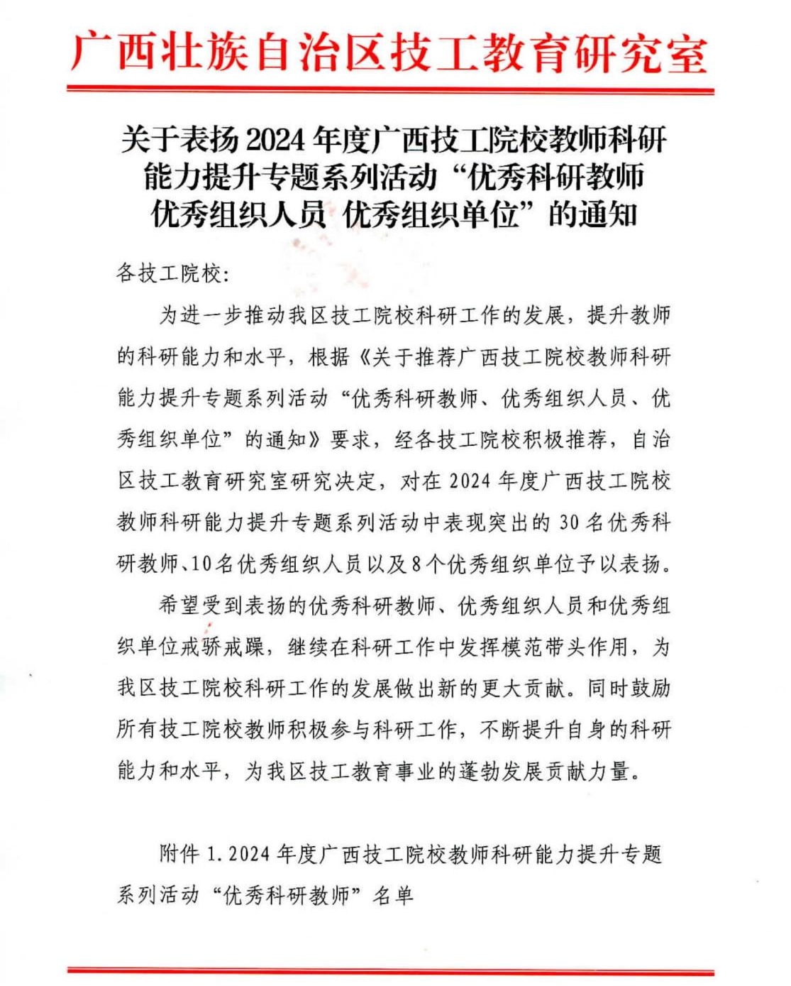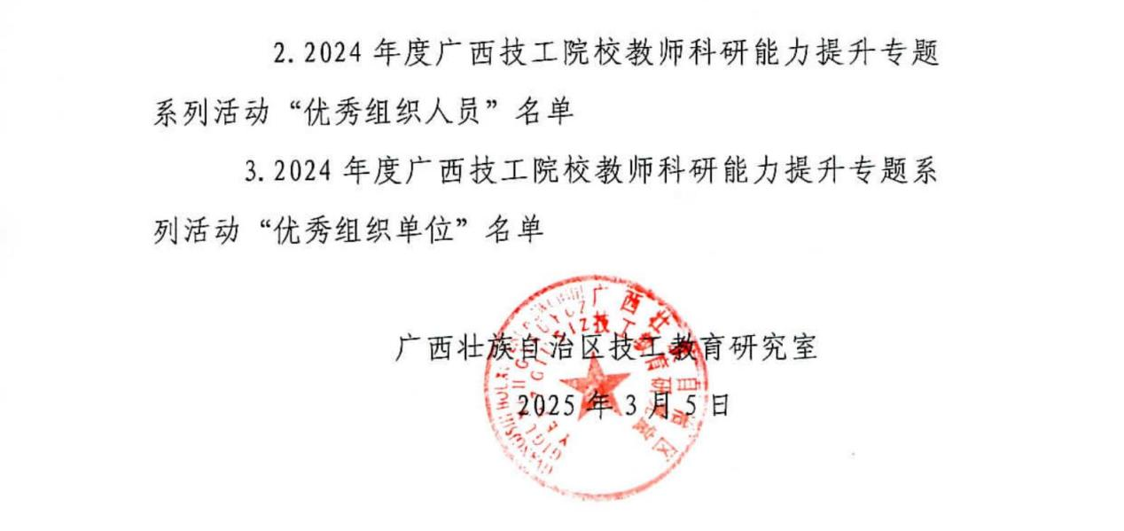 获得荣誉不仅是对学院科研工作的充分肯定,更是对全体教师辛勤付出的高度认可。下一步,学院将继续提升科研能力,为广西技工教育事业的发展贡献力量!