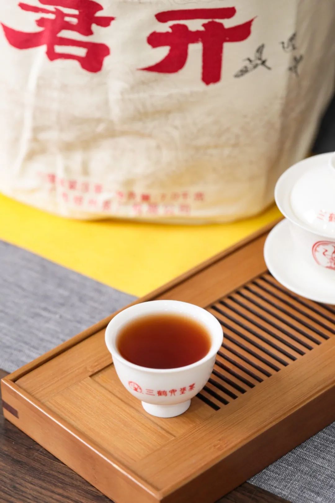 冲泡后,陈香浓郁,木质香明显,汤色红浓明亮,滋味醇厚柔顺,菌花香明显,陈香味浓郁持久,齿颊留香,口感甜润饱满。