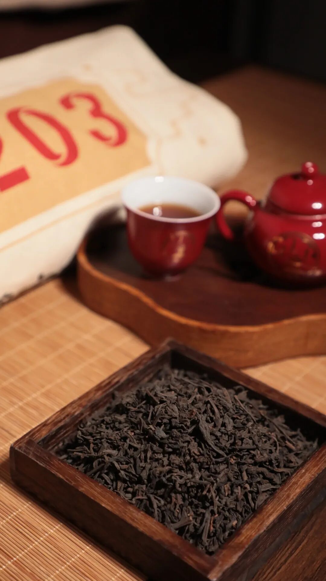 冲泡品饮时,香气陈香纯正、持久,略带木香;汤色红浓、通透油亮;滋味醇厚,绵延柔长,陈韵十足;叶底棕褐油润、活性高。