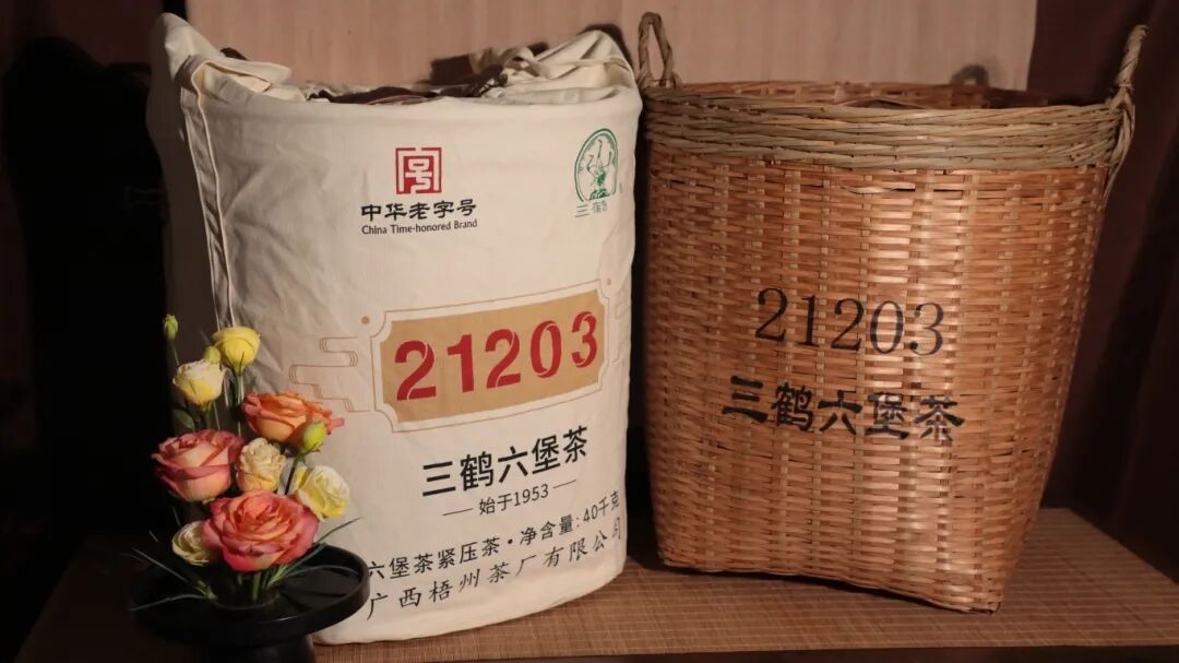 精选二级特色茶料制作,原箩紧压大竹箩包装,其压制松紧适中,更利于后期转化;干茶外形较紧结、茶身重实,色泽黑褐油润,陈香明显,木质香持久,窖藏气韵浓郁,条索匀整、间有细长嫩茎嫩梗及少量金花。