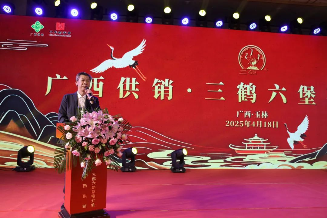 玉林市商务局党组书记、局长覃沛致辞表示,玉林茶产业也有着较好的发展基础,而六堡茶作为广西的特色优势产业,玉林市商务局将积极协调各方资源,为六堡茶的销售和推广创造更加有利的条件。也期待“三鹤”六堡茶能够以玉林为支点,进一步拓展市场,希望借助此次推介会的契机,共同推动六堡茶产业在玉林发展壮大,促进玉林茶产业升级。