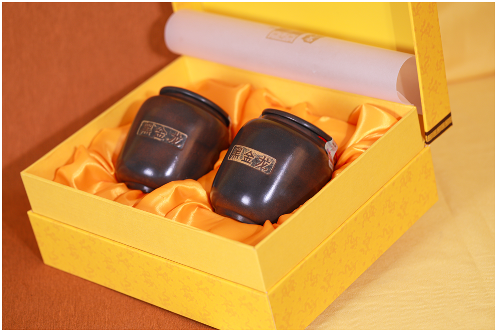 另一款新品“黑金龙”六堡茶,茶汤醇厚甘滑且陈香余韵绵长,在时间的沉淀中孕育出独属“三鹤”六堡茶的味道,在诉说着梧州茶厂七十二年的技艺传承以及独一无二的窖藏陈化环境,是产品质量稳定且优秀的关键所在。