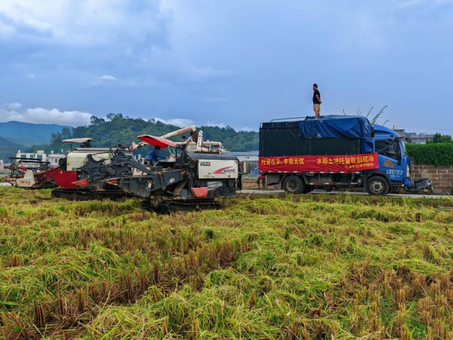 作为服务农业生产的重要力量,今年,北流市供销社进一步整合全系统基层社及企业资源,组建起一支“机械化兵团”深入田间地头。依托10台收割机及配套烘干设备,为早稻种植户提供收割、烘干、储存、销售等一体化服务,服务范围覆盖22个乡镇及周边区域。针对雨季抢收压力,同步开启稻田“白+黑”作战模式,通过批量收割、快速转运的高效联动,切实缓解了农户“晒谷看天”的焦虑,烘干项目服务满意度达98%以上。