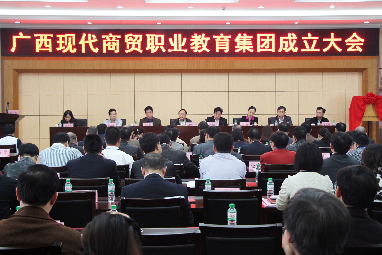 2014年3月27日,广西现代商贸职业教育集团成立大会在广西经贸职业技术学院隆重召开。自治区供销社党组书记、理事会主任胡德才出席大会并讲话。自治区供销社副巡视员荣树来出席大会并主持召开集团第一届理事会第一次会议。广西经贸职业技术学院党委书记樊正强主持大会,广西经贸职业技术学院院长张翔在大会上致辞。自治区财政厅、教育厅、人社厅、商务厅相关处室领导出席大会,自治区教育厅职成处副处长宋联武代表致辞。自治区供销社办公室、人事教育处、财会审计处、综合业务处、合作指导处等业务处室负责人,各市供销社领导,全区系统中职学校领导,社有龙头企业、校企合作企业、校友企业代表,部分县供销社及基层供销社主任,学院中层干部等共计200多人参加了大会。