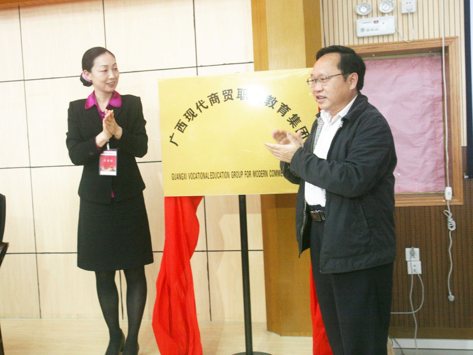 自治区供销社党组书记、理事会主任胡德才在大会讲话中指出,广西现代商贸职教集团的成立,是系统职业院校走规模化、集团化联合发展迈出的新步伐,对发挥系统职业教育作用,搞好为农服务和商贸流通服务有着重要意义。他希望职教集团成员单位要密切合作、大胆改革、认真探讨、扎实推进,培养更多高素质劳动者和技能人才,把集团办成服务“三农”和促进经济社会发展的良好平台。会上,举行了广西现代商贸职教集团揭牌仪式,胡德才主任与张翔院长为集团揭牌。