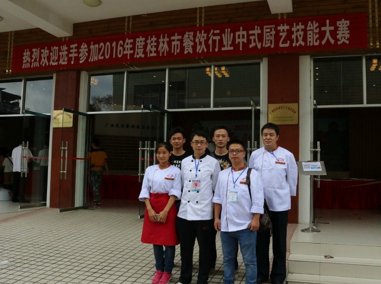 由桂林市总工会、桂林市人力资源和社会保障局、桂林市餐饮烹饪协会联合举办的“2016年桂林市餐饮行业中式厨艺技能大赛”于2016年10月20日在广西商业高级技工学校举行。广西桂林商贸旅游技工学校共选派了烹调专业教师5名、糕点专业教师2名,共7名教师参加此次大赛,并取得优异成绩。
