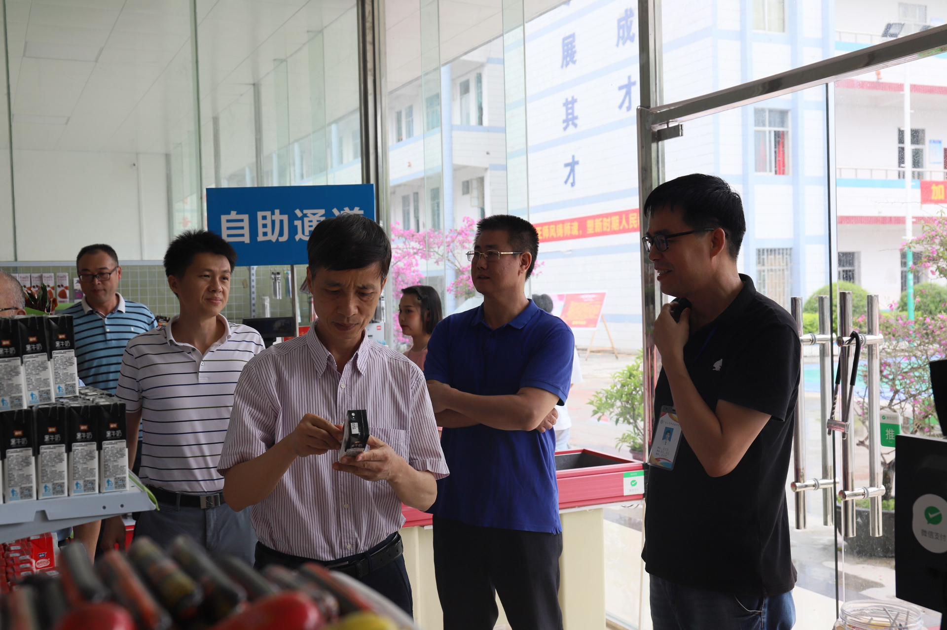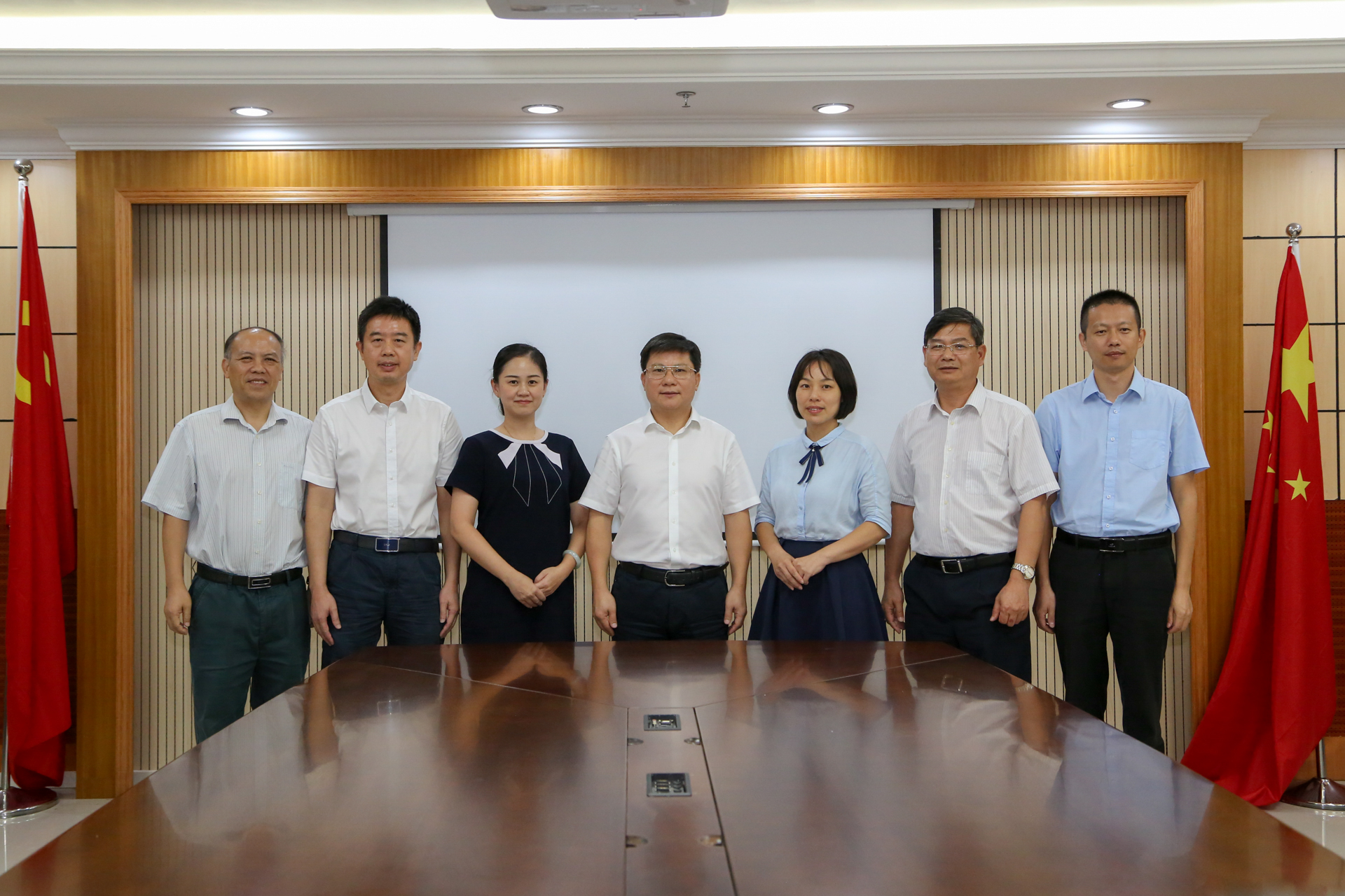 图为:李杏在广西梧州商贸学校与学校领导、老师们座谈。