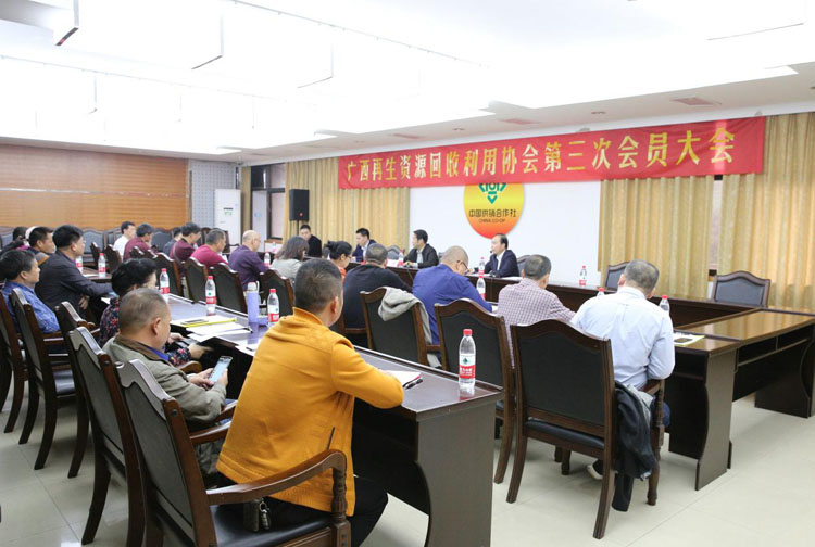 2018年11月30日下午,广西再生资源回收利用协会第三届会员大会在广西壮族自治区供销社会议室举行,广西供销再生资源有限公司全票当选协会会长单位。广西壮族自治区供销合作联社党组书记、理事会主任王健社有企业管理处副处长肖烽出席会议。