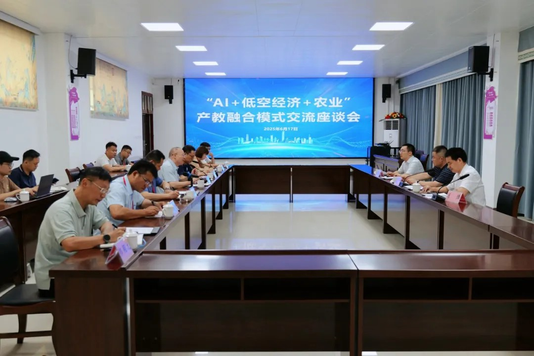 调研组实地考察了学校低空经济实训室,详细了解无人机等相关专业的实训设施建设、教学开展及人才培养情况,对学校在该领域的实践探索给予关注。各方围绕“AI+低空经济+农业”融合发展的主题进行了深入座谈交流。