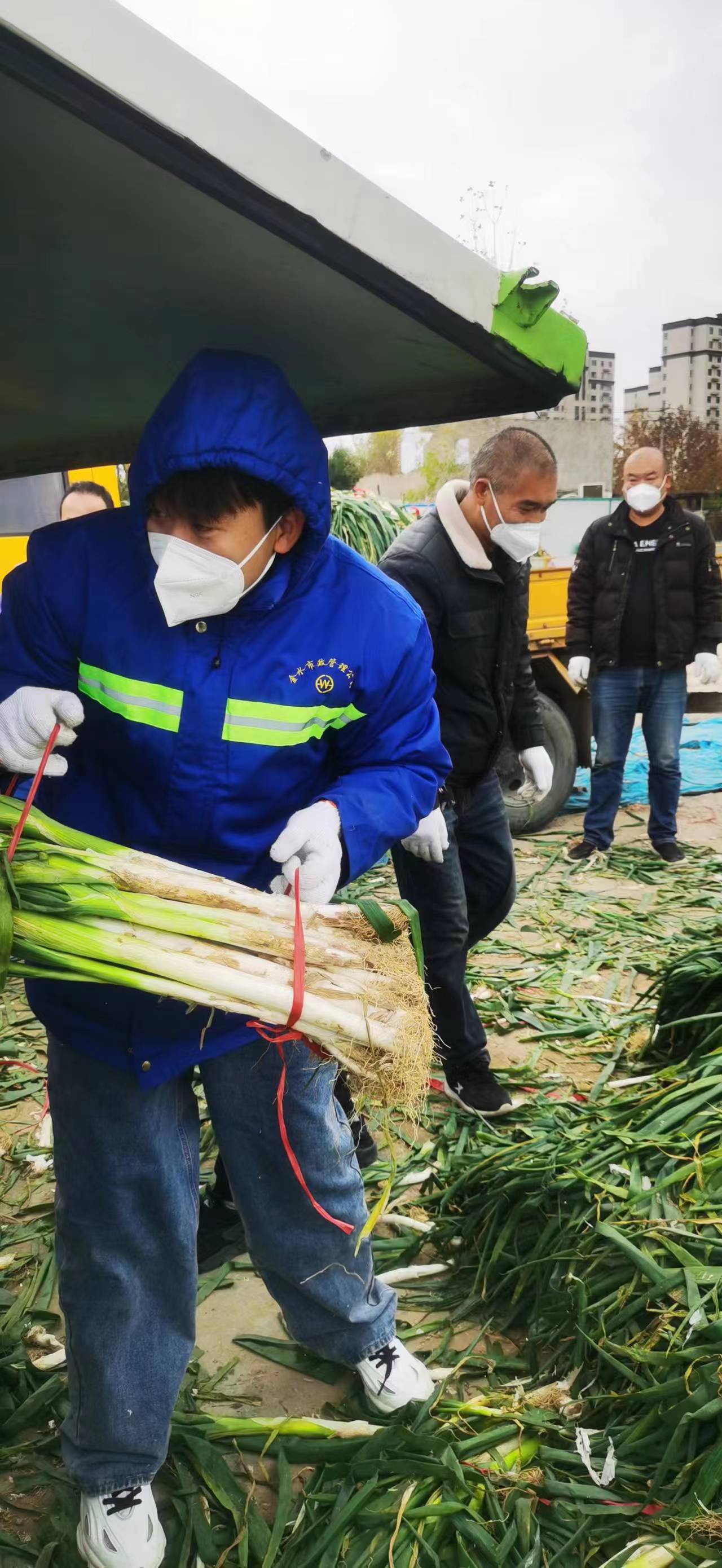 13万斤大葱、3万斤西红柿、1万斤萝卜、1万斤白菜……11月30日上午,载满14卡车的新鲜时令蔬菜开进郑州市杨金路某停车场,为金水区一线环卫、市政、绿化工人送上了冬日的“暖心蔬菜包”。