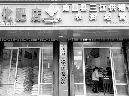 ①农户在南昌县三江供销合作社农资经营店订购化肥。